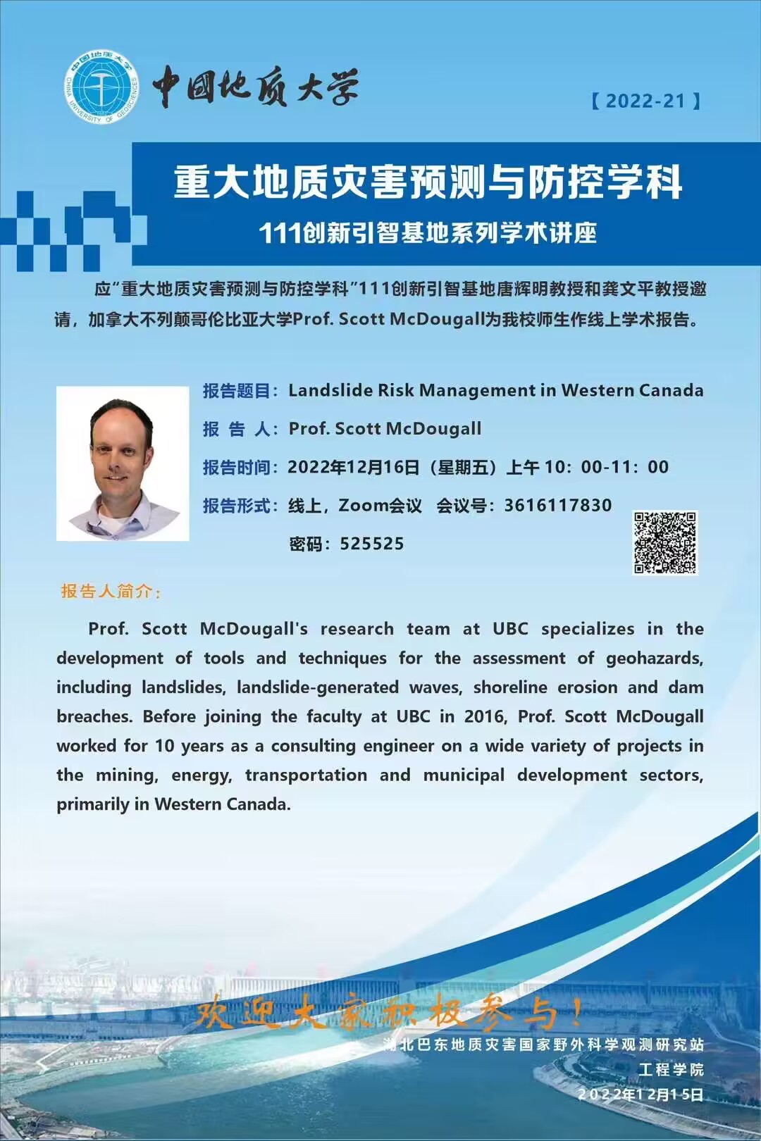 重大地质灾害预测与防控学科---111创新引智基地系列学术讲座2022-21期