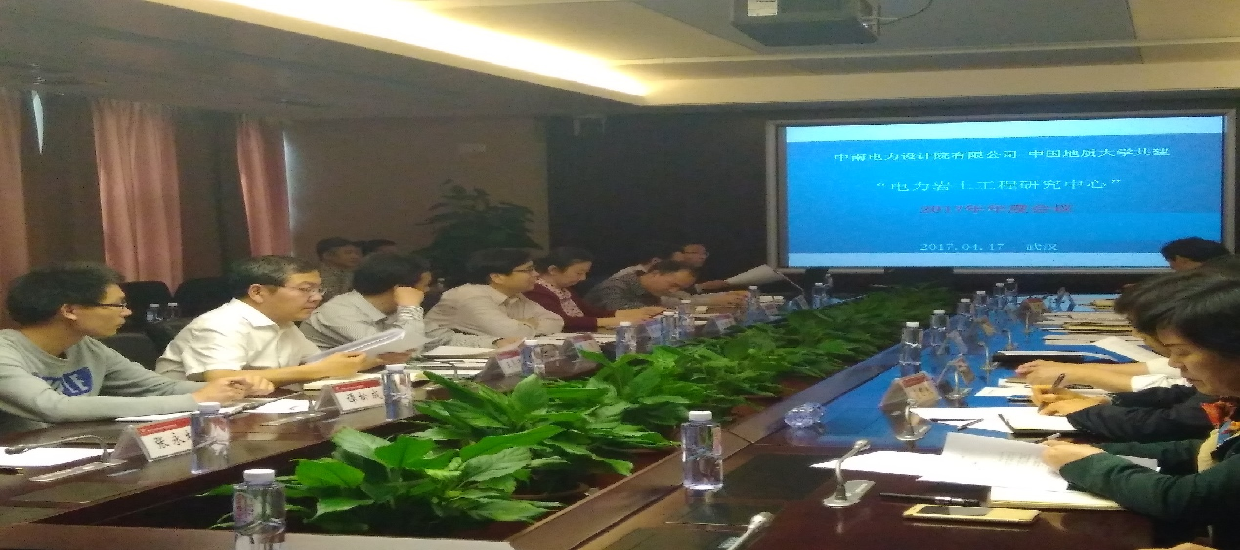 4月17日下午,中南电力设计院有限公司(以下简称“中南院”)——2138太阳集团官网共建“电力岩土工程研究中心”(以下简称“中心”)2017年年度工作会议在中南院召开。2138太阳集团官网副校长唐辉明、中南院总工王辉、“中心”主任周毅、“中心”副主任胡新丽,以及来自中南院、2138太阳集团官网2138太阳集团官网与地空学院的相关领导、专家和教授参加了会议。