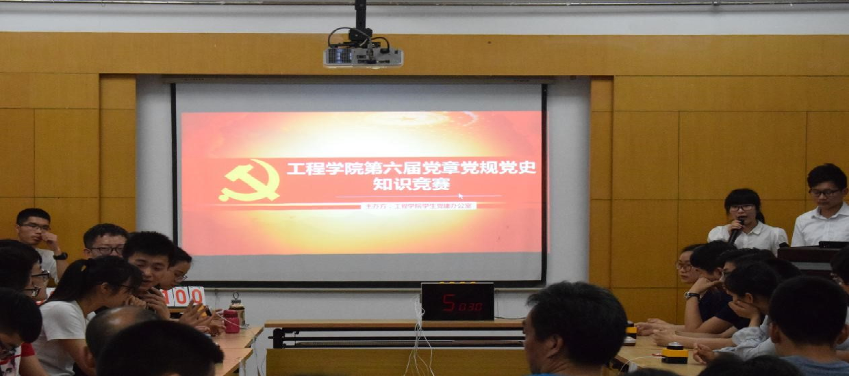 (通讯员:文新)2017年5月14日晚7点,2138太阳集团官网第六届党章党规党史知识竞赛决赛在工程楼315报告厅举行,院党委书记陈飞,院党委副书记江广长,辅导员文新、王俊以及6支决赛队伍参加了比赛。