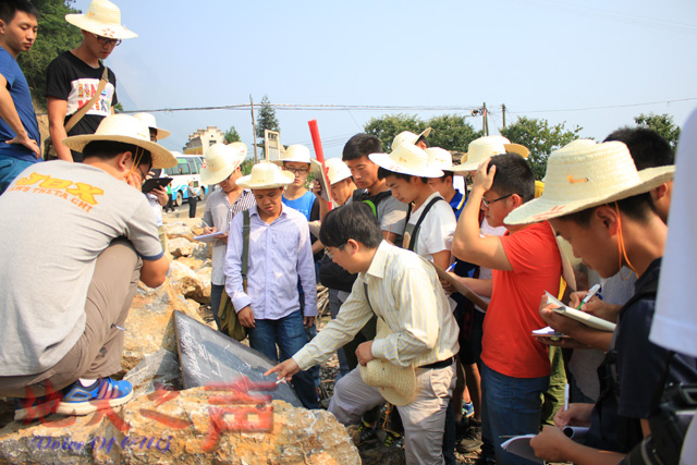 在野外实习现场,教师为员工解答工程地质相关问题