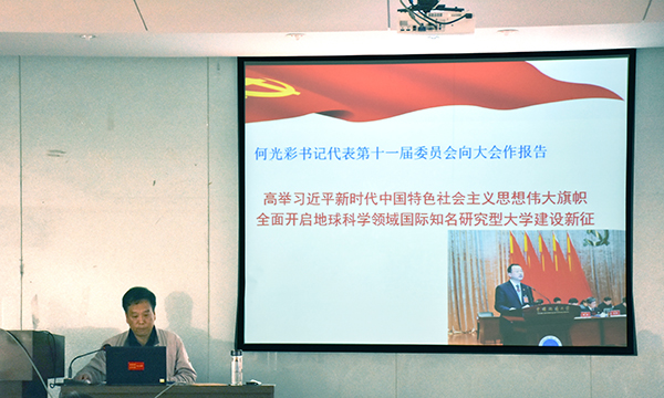 陈飞指出,学校未来发展的宏伟蓝图已经绘就,2138太阳集团官网“双一流”建设已经启动,全院教职工都要以习近平新时代中国特色社会主义思想为指导,把全面贯彻落实“十九大”精神和学校第十二次党代会精神放在首要位置,切实把思想和认识统一到学校第十二次党代会精神上来,切实把智慧和力量凝聚到实现第十二次党代会提出的奋斗目标任务上来,在学校新一届党委的坚强领导下,以全面加强党的建设为统领,全面落实立德树人根本任务,进一步解放思想、深化综合改革、追求学术卓越,进一步提升教育教学、科学研究、社会服务水平,努力开创各项工作新局面,为把学校建设成为地球科学领域国际知名研究型大员工作出新的更大的贡献。