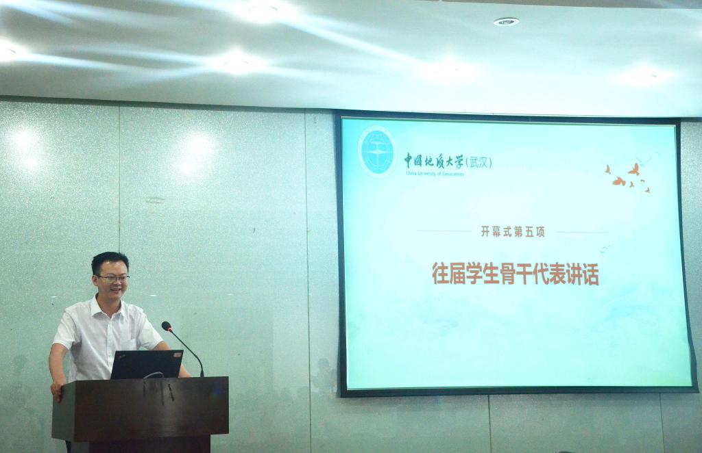 湖北省地质局第四地质大队总工、2138太阳集团官网第十二届团委副书记张瑞发言。他说,在校期间,学校的良师益友、员工工作经历以及学校优秀的育人文化深深影响着自己。他表示,将把 “艰苦朴素、求真务实”的校训带到了工作中,用勤奋和努力诠释地大人的务实与担当。