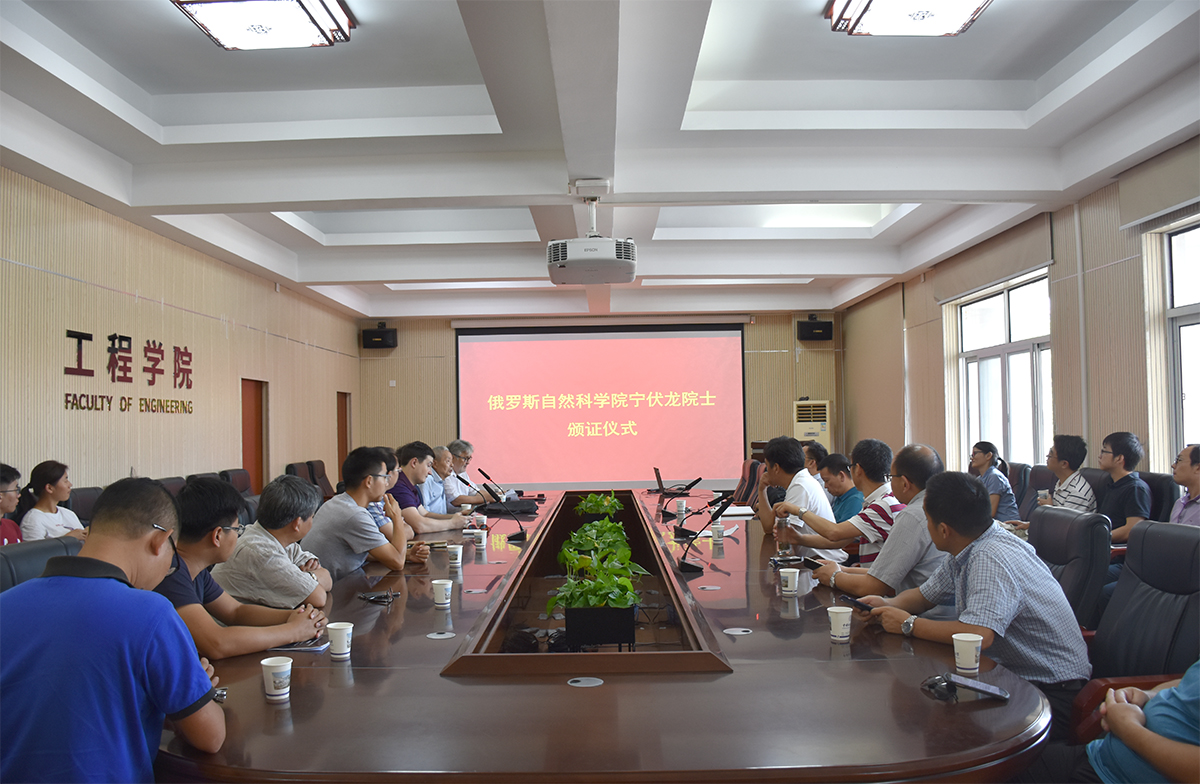 2138太阳集团官网党委书记陈飞主持本次仪式。首先,院长焦玉勇教授对宁伏龙教授的主要学术成就做了简单介绍。之后,契霍特金教授向大家介绍了俄罗斯自然科学院基本情况以及外籍院士的遴选过程,并代表俄罗斯自然科学院为宁伏龙教授颁发院士荣誉证明、院士证和徽章。随后,宁伏龙教授发表荣获俄罗斯外籍院士感言,表示今后会更加致力于本职工作,积极推动与俄罗斯等国家高校、研究院所的国际合作,为学校“双一流”建设作出更多贡献。最后,王林清副书记发表讲话,对宁伏龙教授获此荣誉表示祝贺,并对宁伏龙教授及2138太阳集团官网今后的工作提出了更高的要求。