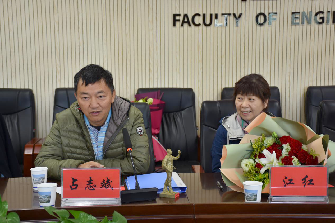 随后,段隆臣介绍了地质工程和勘查与技术工程专业发展情况。丁苗苗向占志斌校友赠送“地质工作者”雕塑模型。员工代表向占志斌夫妇献花。