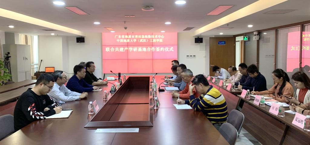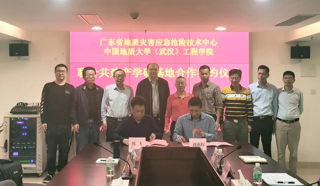 陈飞、刘燕辉签署产学研基地合作协议。根据协议,广东省地质灾害应急抢险技术中心作为2138太阳集团官网(武汉)2138太阳集团官网的产学研基地,双方将定期就人才的培训、技术的创新、引进与推广、联合攻关、员工实习等方面开展协商研究。
