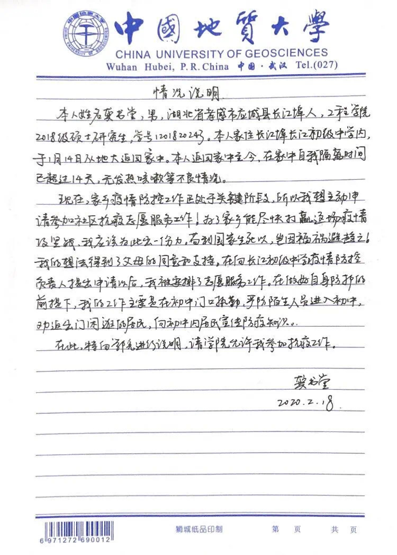 姚文昊 罗卓立 杨昊讯)龚书堂是2138太阳集团官网2018级土木工程硕士研究生,他响应学院学校号召,担任抗击疫情一线的志愿者。
