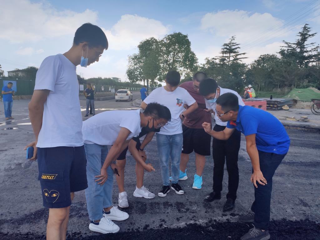 图2 学院师生在沥青路面施工现场学习
