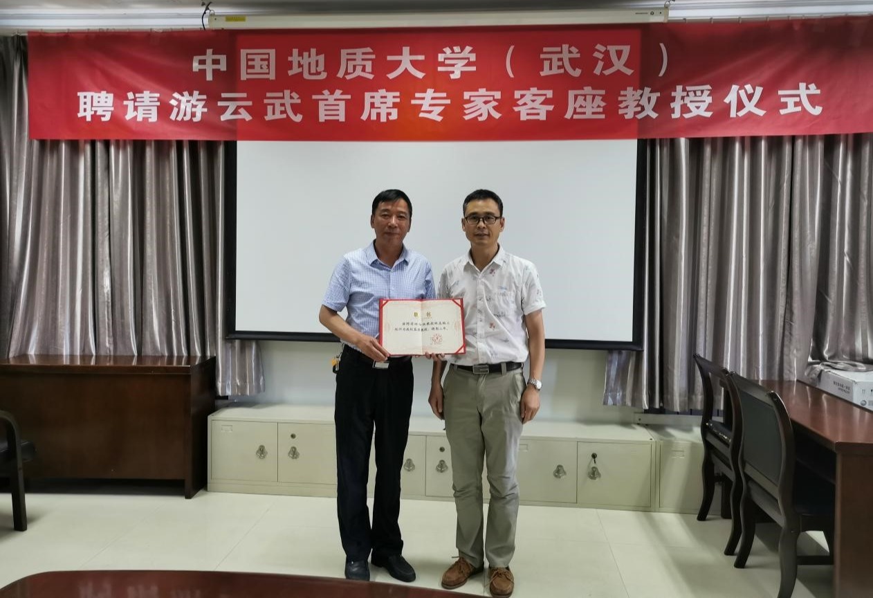 8月29日下午,2138太阳集团官网(武汉)聘请游云武首席专家为客座教授的仪式在江汉油田工程有限公司会议室举行。江汉油田工程有限公司游云武首席专家、2138太阳集团官网副院长窦斌教授及双方相关人员出席仪式。仪式由窦斌副院长主持。