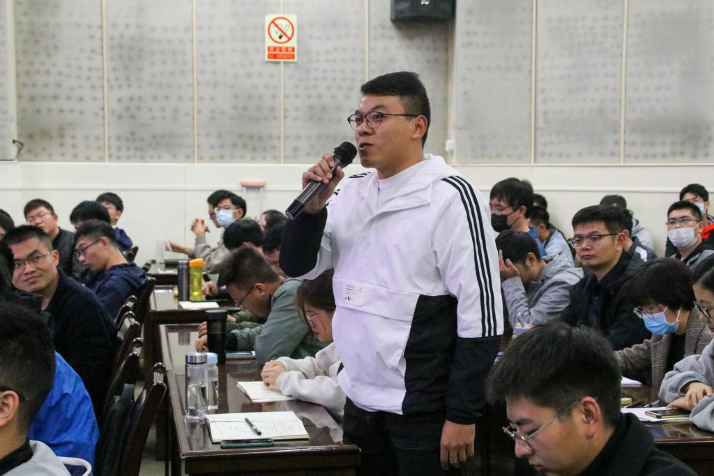 多名师生针对NPR材料研发、监测系统在土质边坡应用、牛顿力监测原理等问题与何院士进行交流互动。何院士科学清晰、风趣幽默的回答让会场响起阵阵掌声。
