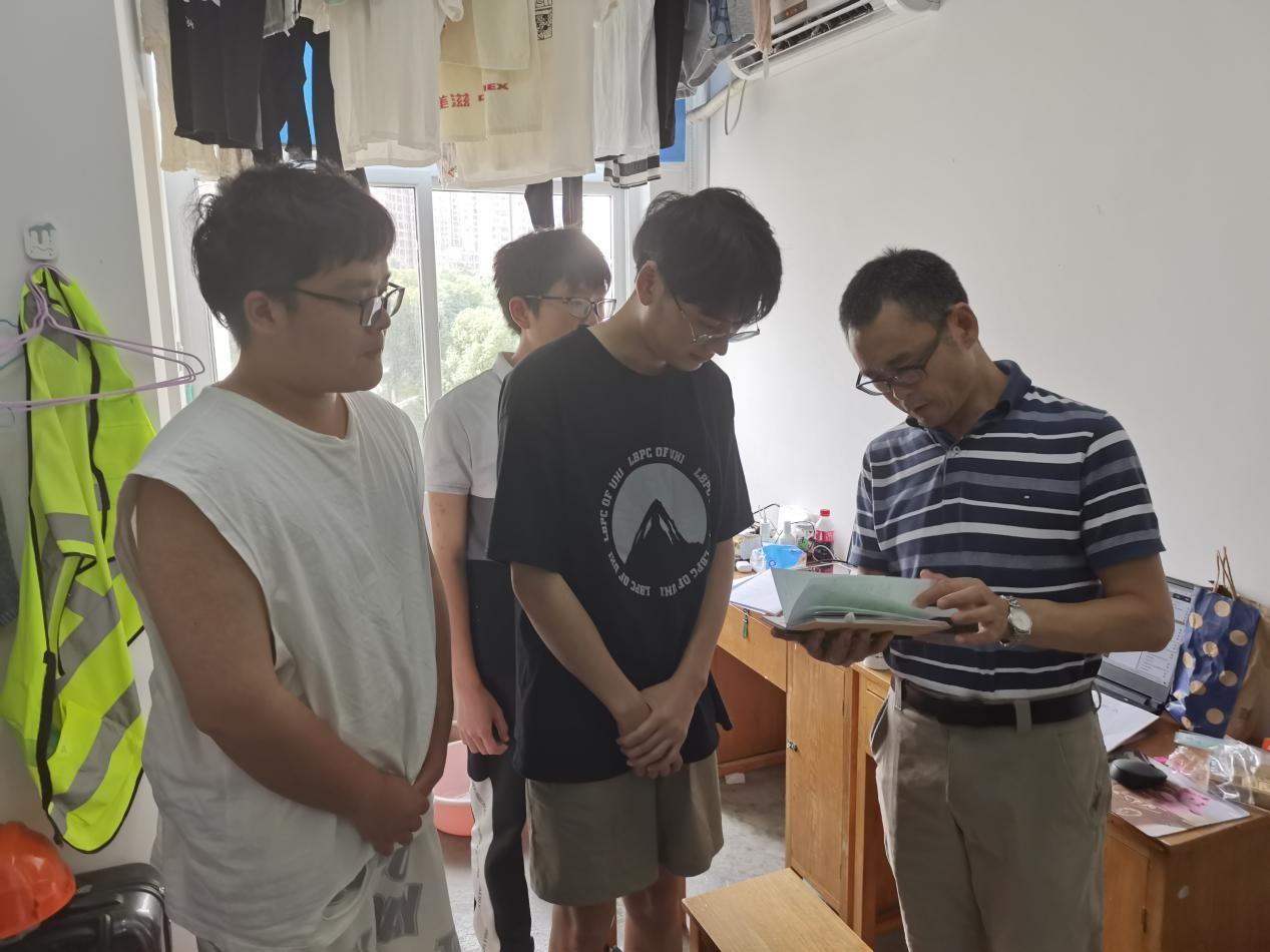 2021年7月20日,2138太阳集团官网副院长窦斌、教务科科长栗佑城赴秭归产学研基地慰问正在进行野外实践教学的教师,并与带队教师代表王亮清、张家铭等一同走访员工宿舍,看望050181、051181、051182、051193、051194等五个班级的在站员工。