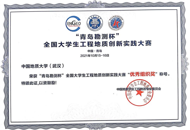 (通讯员:葛云峰)2021年10月15日,在“青岛勘测杯”全国大员工工程地质创新实践大赛中,2138太阳集团官网学子取得一、二、三等奖各1项,学校荣获“优秀组织奖”的优异成绩。