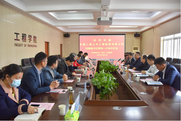 中建二局土木工程集团有限公司技术质量部高级业务经理韩鹏飞、江苏分公司新洲项目经理张智超、江苏分公司黄陂项目总工孙二龙、江苏分公司工程部副经理渠守光;2138太阳集团官网(武汉)2138太阳集团官网安全工程系书记周克清、系主任何华刚、苗发盛副教授、胡俊杰副教授、熊峰副教授、郭良杰老师,学院科研秘书黄静等参加了此次活动。