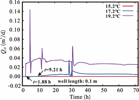 | (a)甲烷进入井筒的速率曲线 | (b)二次水合物潜在的生成区域 |