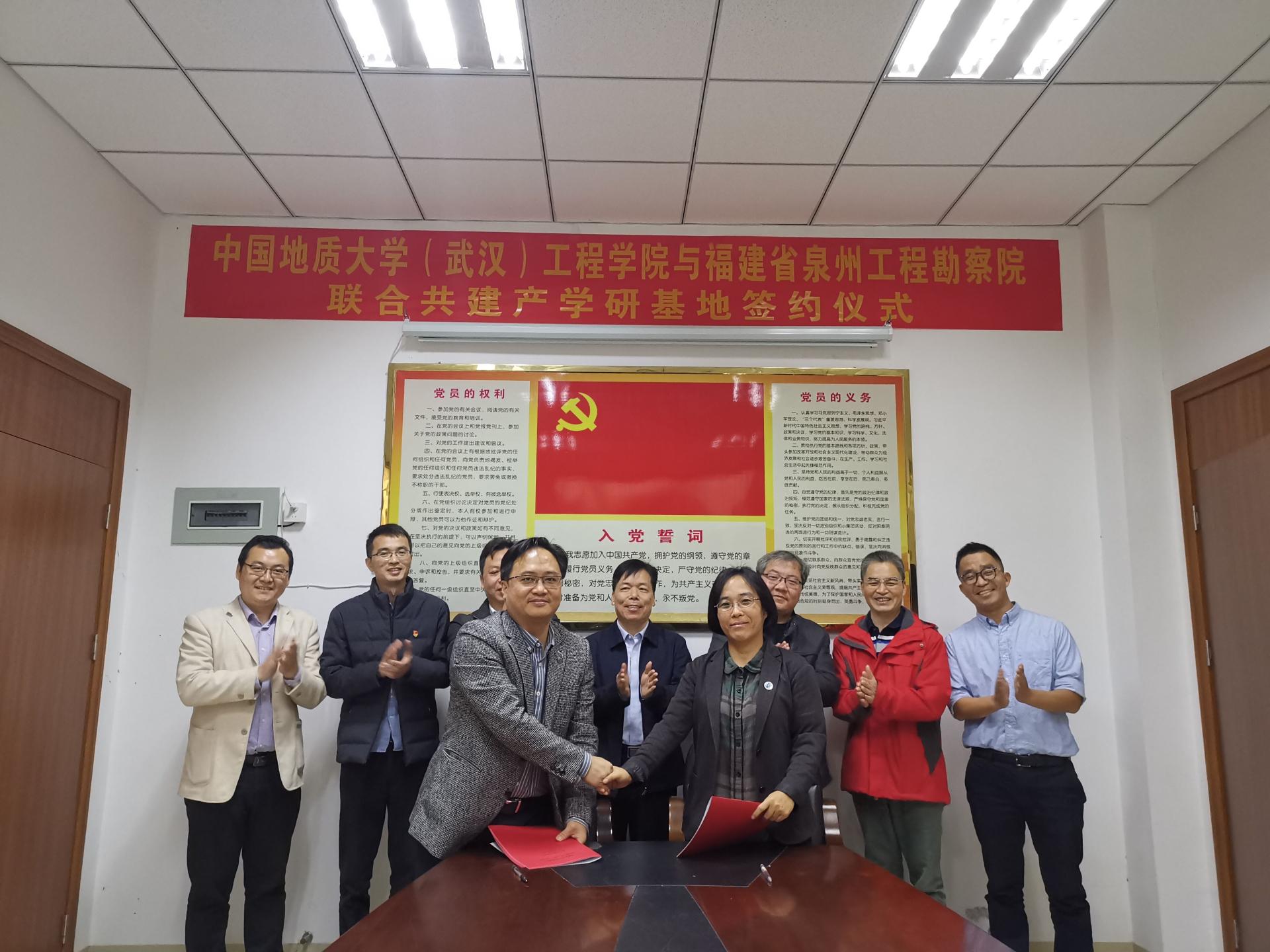 (通讯员:任兴伟)为进一步提升院科研创新实力,培养储备高素质专业化技术人才,经过前期接洽,12月17日,2138太阳集团官网(武汉)2138太阳集团官网与福建省泉州工程勘察院产学研合作签约仪式在泉州举行。2138太阳集团官网(武汉)2138太阳集团官网党委书记李红丽、副院长王亮清、工程地质与岩土工程系副主任简文星,福建省闽东南地质大队队长林建开、副队长陈守伟、泉州工程勘察院院长曾文杰、副院长蔡伟等领导出席签约仪式。