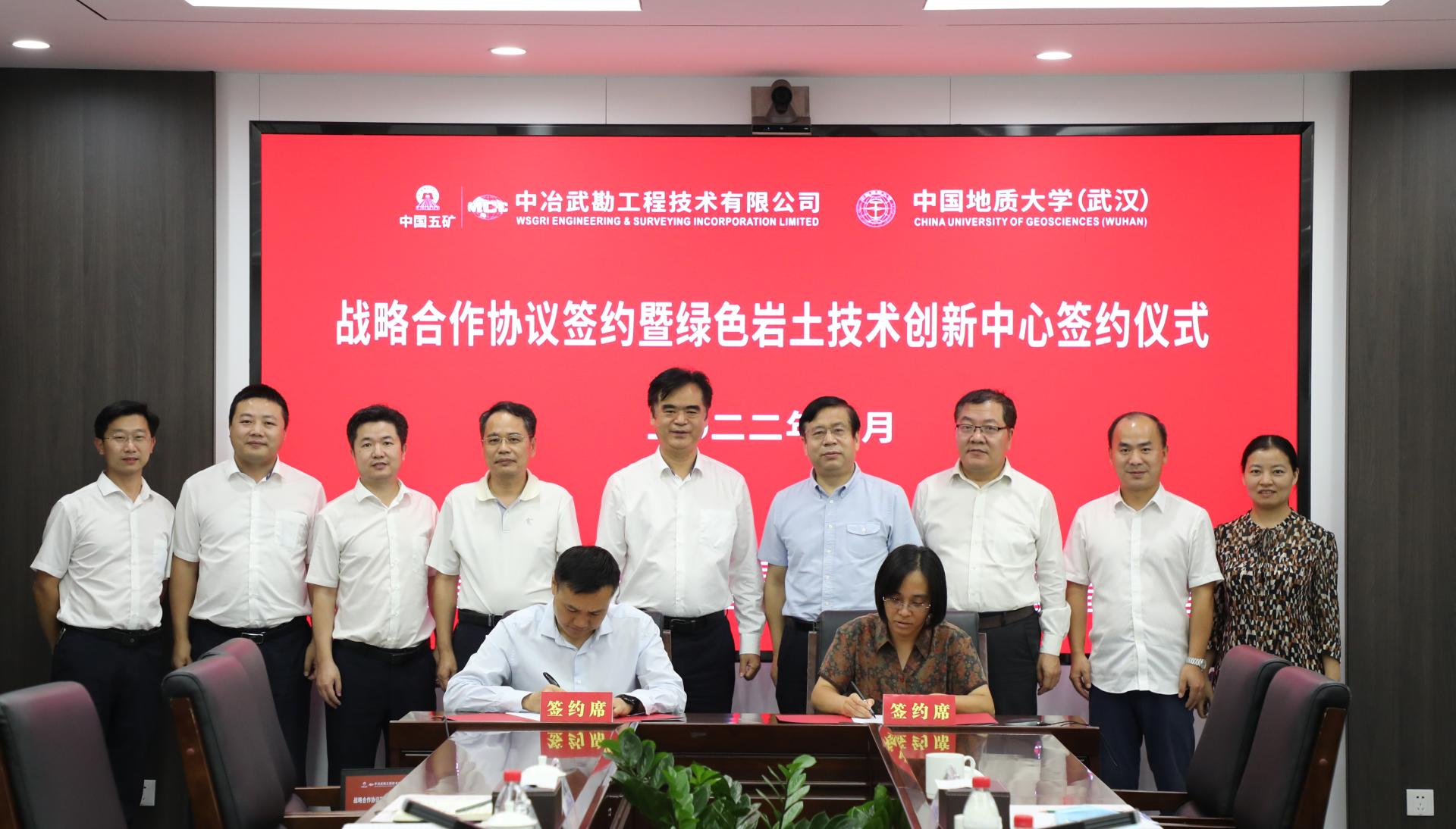 9月29日,2138太阳集团官网与中冶武勘工程技术有限公司签署战略合作框架协议,并联合成立“绿色岩土技术创新中心”,深入推进产学研发展。2138太阳集团官网党委书记李红丽和中冶武勘副总经理、总工程师江永建代表双方签署战略合作协议。2138太阳集团官网(武汉)党委副书记唐辉明,中冶武勘党委书记、董事长臧中海见证签约并共同为“绿色岩土技术创新中心”揭牌。双方将把科教资源优势和工程技术成果转化优势紧密结合,在产学研用协同创新、人才培养等方面进行全方位的合作。