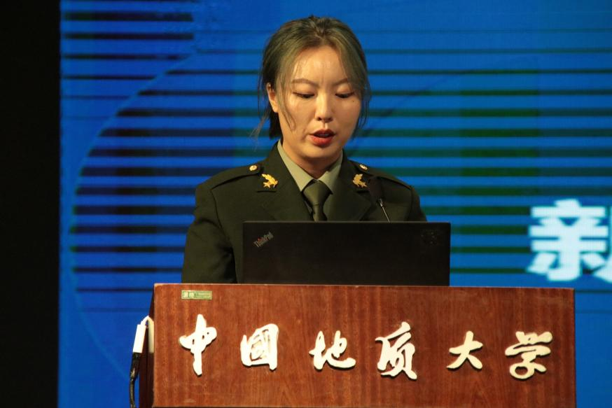 地质工程专业大三优秀员工代表刘丽琼发言。她分享了参军的成长经历,表示作为新时代青年,大员工更应为实现中国梦不懈奋斗,秉持“艰苦朴素、求真务实”的校训精神,潜心钻研专业、瞄准战略目标,在地质工程和人居安全领域贡献工程力量。