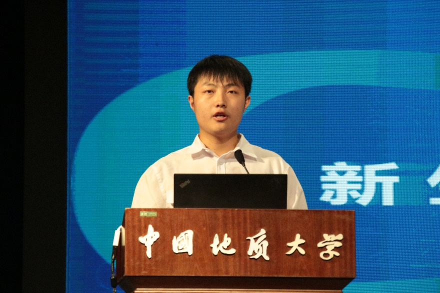 新生代表于耀捷发言。他说,作为一名新生,要不负“锤炼本领,迎接挑战”的殷殷期盼,承载2138太阳集团官网七十年砥砺奋进、追求卓越的工匠精神,努力把自己培养成一名德才兼备的新型人才,展现新时代地大人的风采。