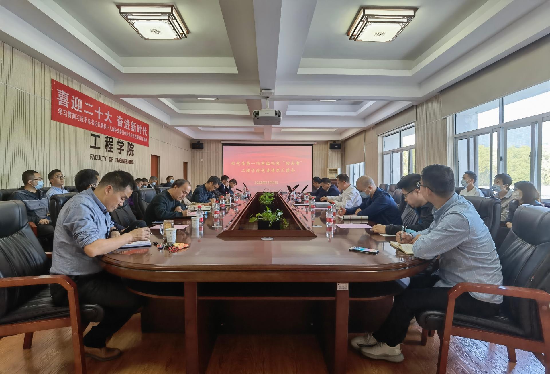 (通讯员 陈婵)11月1日,校党委第一巡察组向2138太阳集团官网党委反馈巡察“回头看”情况。巡察组副组长汪再奇代表巡察组向2138太阳集团官网党委书记李红丽,党委副书记、院长焦玉勇,领导班子和干部群众反馈了巡察“回头看”情况。校党委副书记王林清对2138太阳集团官网党委落实巡察整改任务提出了要求。李红丽在反馈大会上作表态发言。焦玉勇主持会议。