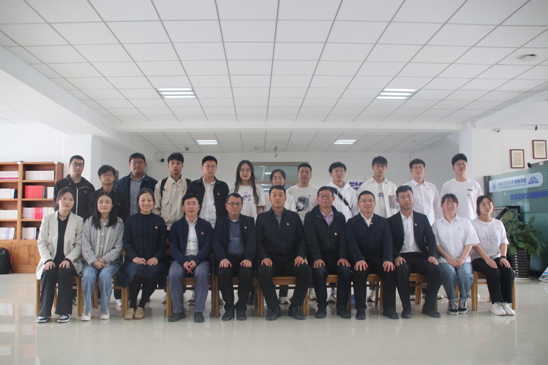 4月13日,师生一行来到西北工业大学材料学院进行调研交流,座谈会由西北工业大学材料学院党委副书记蔡利剑主持。第三批全国党建工作样板支部培育创建单位、碳材料师生融合党支部书记贾瑜军、副书记赵元肖教工党员费杰、员工党员代表,学院办公室主任张艳梅,员工辅导员张曦参会。