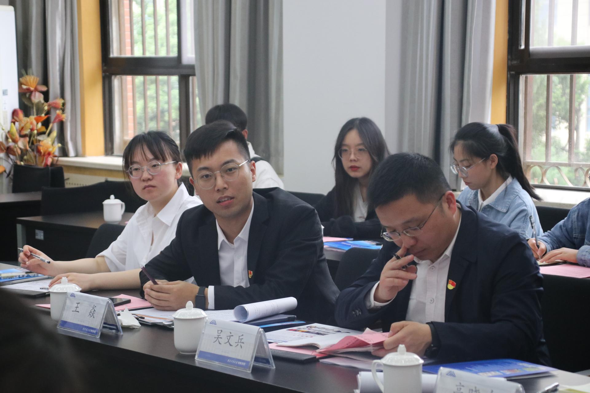 首先,张成凤和高晓东分别介绍了参会人员,详细讲解了学院发展历程、学科特色、师生情况、员工工作等内容。员工党建专职辅导员朱凡凡、党建辅导员王焱分别介绍了本院员工党支部设立方式、组织架构以及员工党建工作的特点和下一步工作思路。