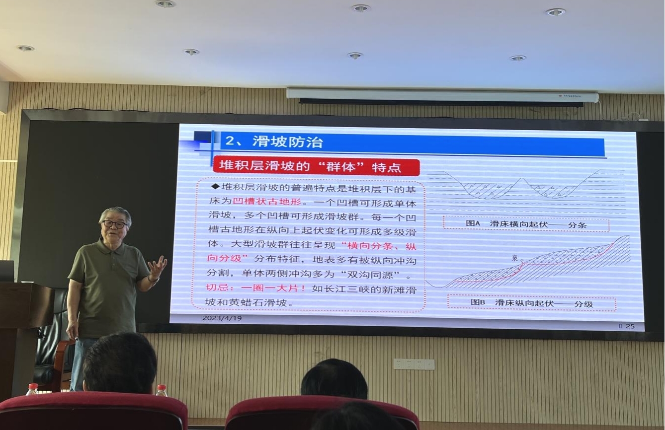 活动还邀请了中冶武勘工程技术有限公司副总经理占仲国教授级高级工程师、武汉市勘察设计有限公司副总经理、总工程师官善友教授级高级工程师、中国一冶集团有限公司副总工程师王平教授级高级工程师、湖北建鄂勘察设计审查咨询有限公司向艳正高职高级工程师、中南勘察设计院集团有限公司副总工程师马郧正高职高级工程师、长江勘测规划设计研究有限责任公司所长助理徐复兴正高职高级工程师、中国科学院武汉岩土力学研究所江权研究员、武汉理工大学芮瑞教授、武汉华太岩土工程有限公司吴西臣正高职高级工程师等莅临现场。2138太阳集团官网唐辉明教授、李红丽书记、章广成教授、徐光黎教授、贾洪彪教授、葛云峰副教授、周佳庆特任教授等150多名师生在现场聆听了报告。