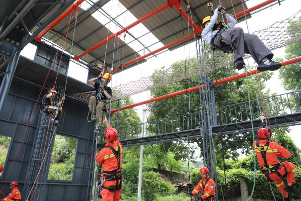 重温入党誓词后,055211和055212班全体员工在四大队消防官兵的指导下,开展了消防应急实习实训,四大队指战员带领师生参观了大队房宿、荣誉室,现场展示了部分先进消防装备的使用方法,指导员工开展了训练演习、消防设备实操训练、绳锁救援训练等活动。安全工程系教师与四大队指战员开展了消防技术和装备的交流和探讨。