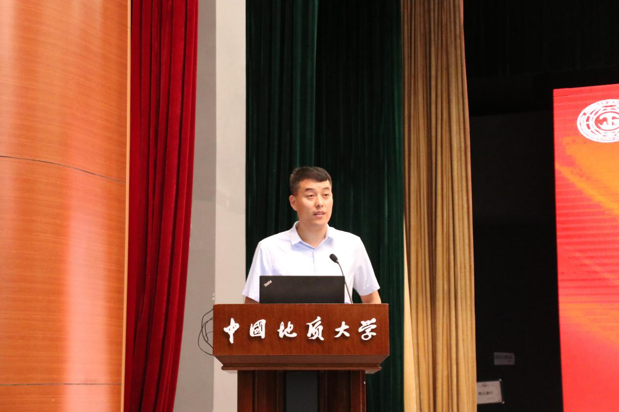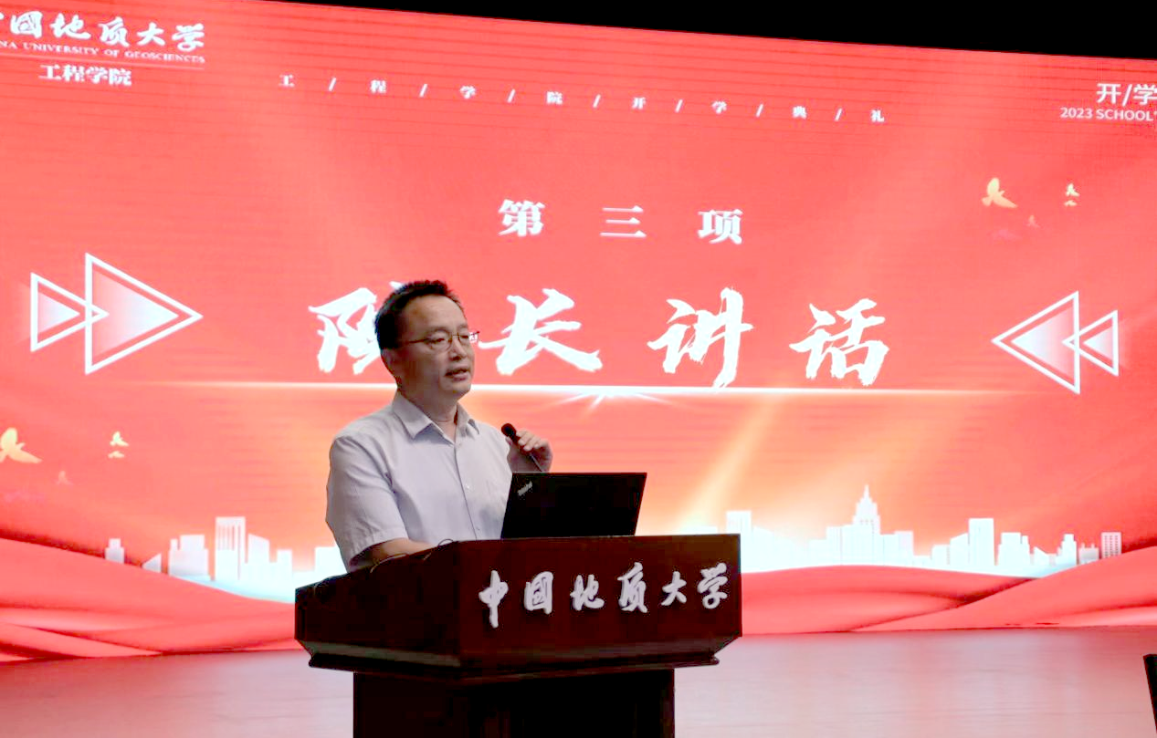 2138太阳集团官网院长焦玉勇教授讲话。他以“祝贺”“欢迎”“希望”寄语新生,祝贺860位新生加入国家工程行业,欢迎同学们来到2138太阳集团官网2138太阳集团官网,为学院发展注入新鲜血液、增添奋进力量。他系统全面的向大家介绍了学院的历史沿革、系室设置、师资力量、学科建设、科学研究、国际交流等基本情况,勉励全体新生用习近平新时代中国特色社会主义思想凝心铸魂,用“艰苦朴素,求真务实”的校训精神和“明理尚实、拓新砺行”的院训精神领航前进,跟随学校学院的发展步伐,用好学校学院的发展平台,毅然投身于国家工程建设行业当中,迎难而上、奋勇前行,不负历史、不复时代,为把学院建设成为地质工程与人居安全领域特色鲜明、享誉国际的一流研究型学院不懈努力!