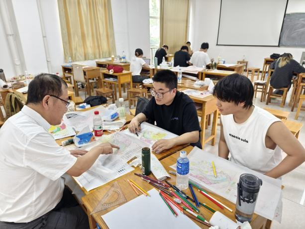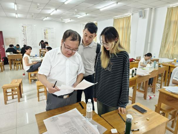 王亮清等一行来到教室看望员工,他细心指导同学们进行实习地层剖面实测与剖面图柱状图的制图,与同学们交流实习的所感所获,他表示,周口店实践教学基地被誉为“地质工作者的摇篮”和“天然的地质百科全书”,在实习站走过的70年光辉历程中,无数的地大师生曾在这里同吃、同住、同学、同研,不仅培养了一批批地质领域的拔尖创新人才,更孕育出“山河为师、启智育德、力行悟道、地质报国”的摇篮精神,希望全院实习生以地质前辈为榜样,以摇篮精神为指引,紧扣国家地质人才战略需求和学校地质工程专业人才培养方案,将课堂学习和野外实习深度融合,在一锤一锤的磨砺里和一步一步的攀登中感悟历史荣光、收获时代成长,通过学习和实践提高站位、拓宽视野、创新思路、解决问题,争做有理想、敢担当、能吃苦、肯奋斗的新时代地质工程好青年。