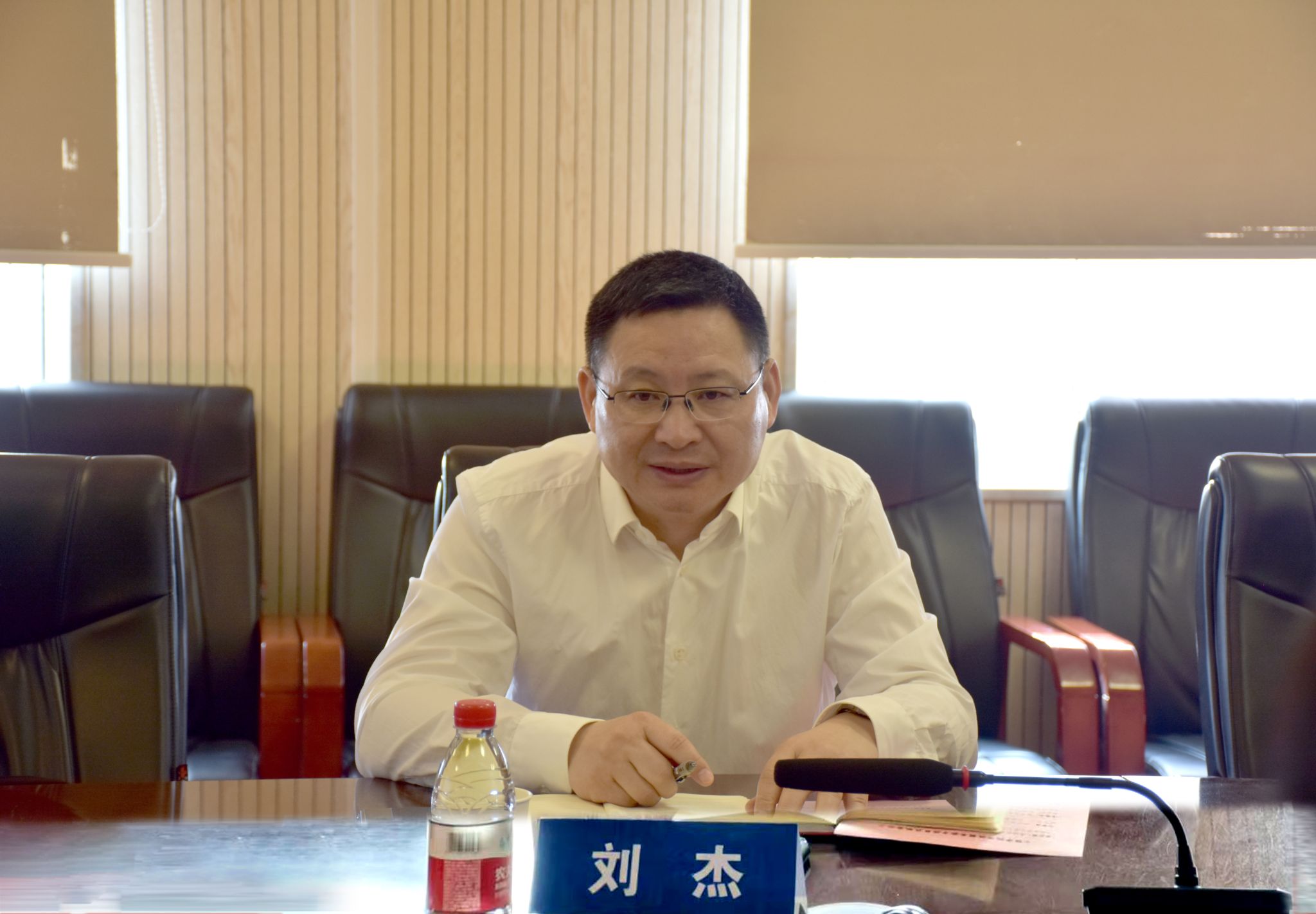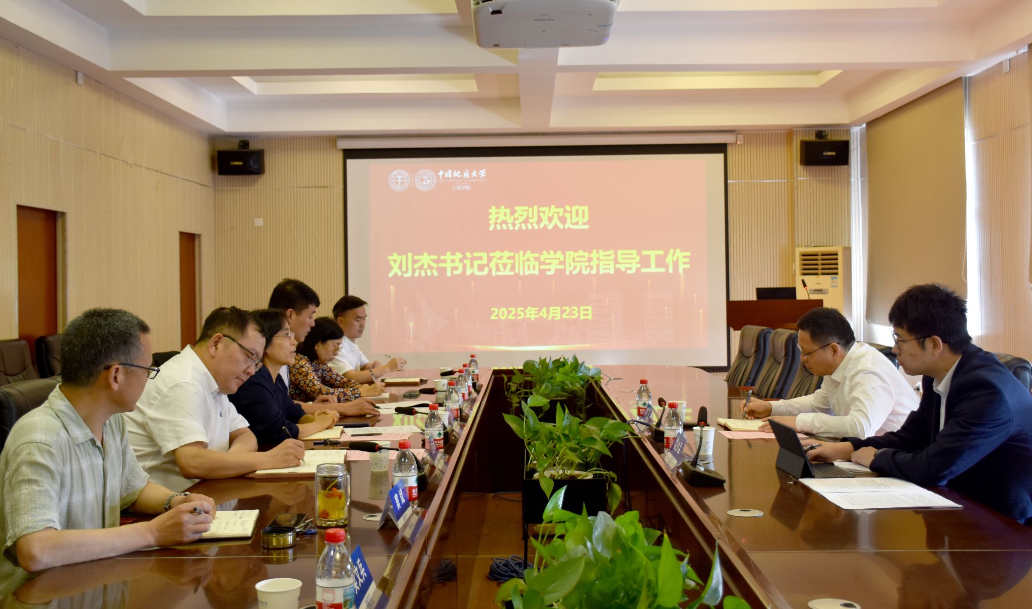 (通讯员 冯焱 王焱 摄影 王灿)4月23日上午,校党委书记刘杰到学院调研指导工作。学院党委书记李红丽、院长王亮清及班子其他成员参加会议。