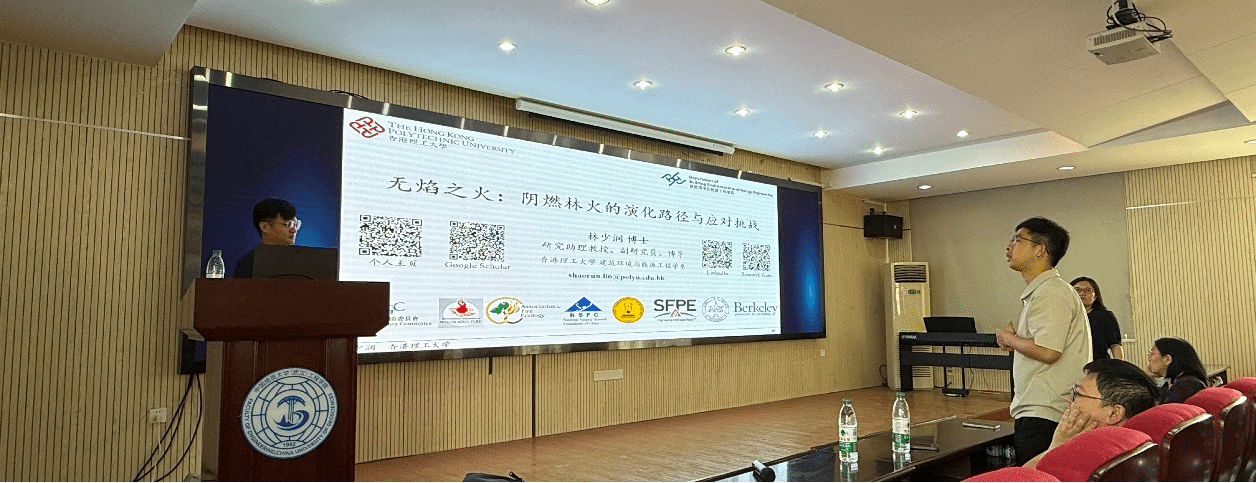 林少润博士的报告以“无焰之火:阴燃林火的演化路径与应对挑战”为题,从阴燃介绍、阴燃泥炭火介绍、泥炭的点火及火蔓延特性、气候变化加剧下的阴燃泥炭火及其碳排放,以及泥炭火的应对策略与挑战五个部分展开讲述。他以印度尼西亚森林大火等诸多现实案例为大家介绍了地球上尺度最大的燃烧与火灾现象——阴燃泥炭火,讲述了如何通过实验手段研究泥炭的点火及火蔓延特性,并着重分析了利用窒息、冷壁熄火、降雨、降雪等理论和方法抑制泥炭阴燃的可行性,还借助开源代码Gpyro建立了二维数值模型,研究了阴燃燃烧的影响因素,为阴燃林火动力学和灾害防治提供了思路和参考,促进了火灾安全应用技术的发展。讲座尾声,林博士展望未来,指出阴燃泥炭火受飞火影响蔓延的问题尚未解决,阻止此类火蔓延的措施仍有待研究,这或将成为未来研究方向。