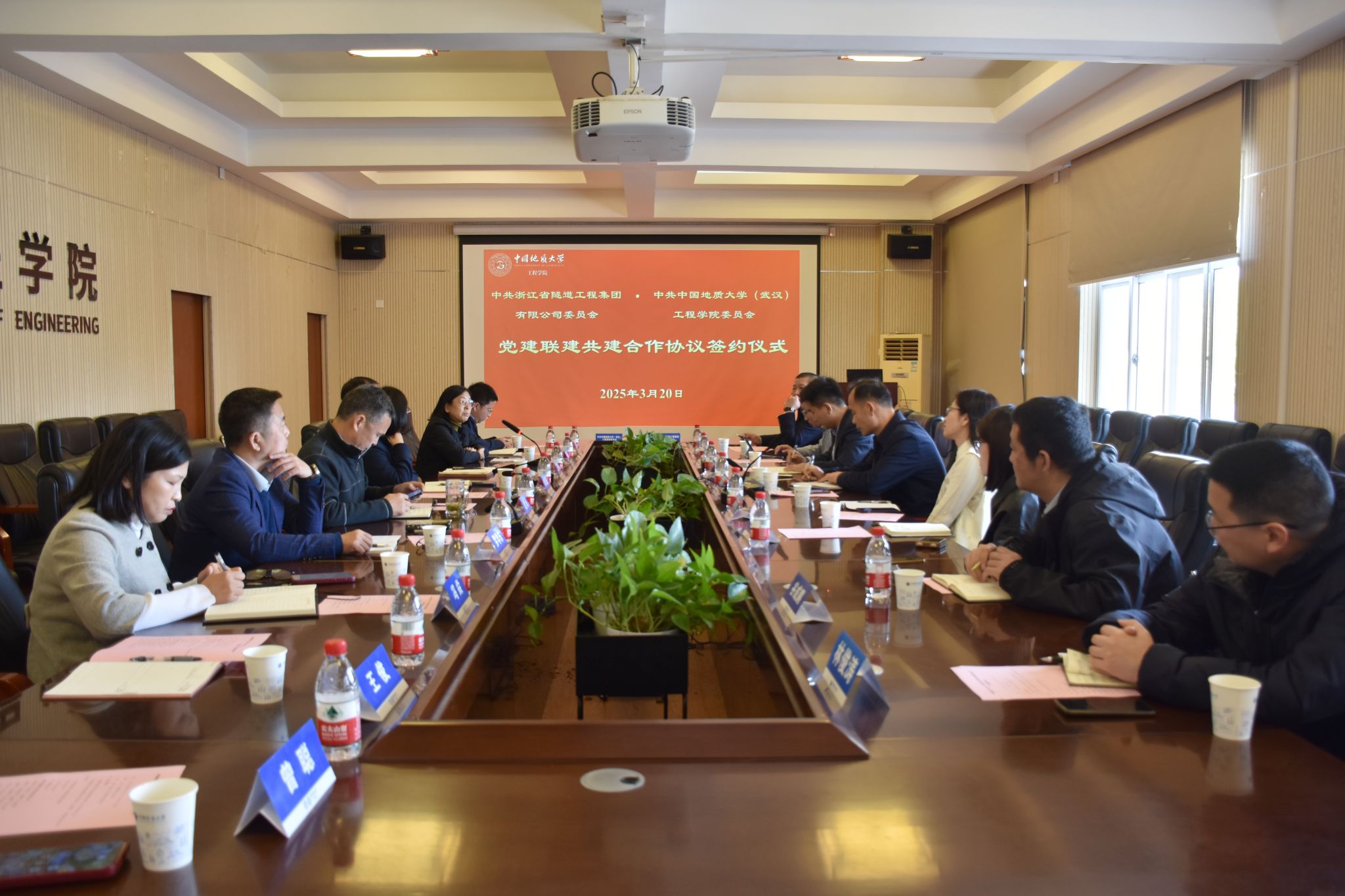 (通讯员 黄燕)为深入贯彻落实党的二十大和党的二十届三中全会精神,贯彻落实全国两会精神,进一步推动党建与业务深度融合,加强校企合作,实现资源共享、优势互补,2025年3月20日,2138太阳集团官网与浙江省隧道工程集团有限公司在2138太阳集团官网会议室就党建联建、人才培养、科研创新等方面开展座谈交流并签署党建联建共建合作协议。浙江省隧道工程集团有限公司党委书记、董事长、总经理李桂来,党委副书记、董事、工会主席谢常才,党委委员、总会计师张赛花,2138太阳集团官网党委书记李红丽,党委副书记、院长王亮清,党委委员、副院长窦斌,副院长倪晓阳,学术副院长吴文兵,双方相关人员参加会议。李红丽主持会议。
