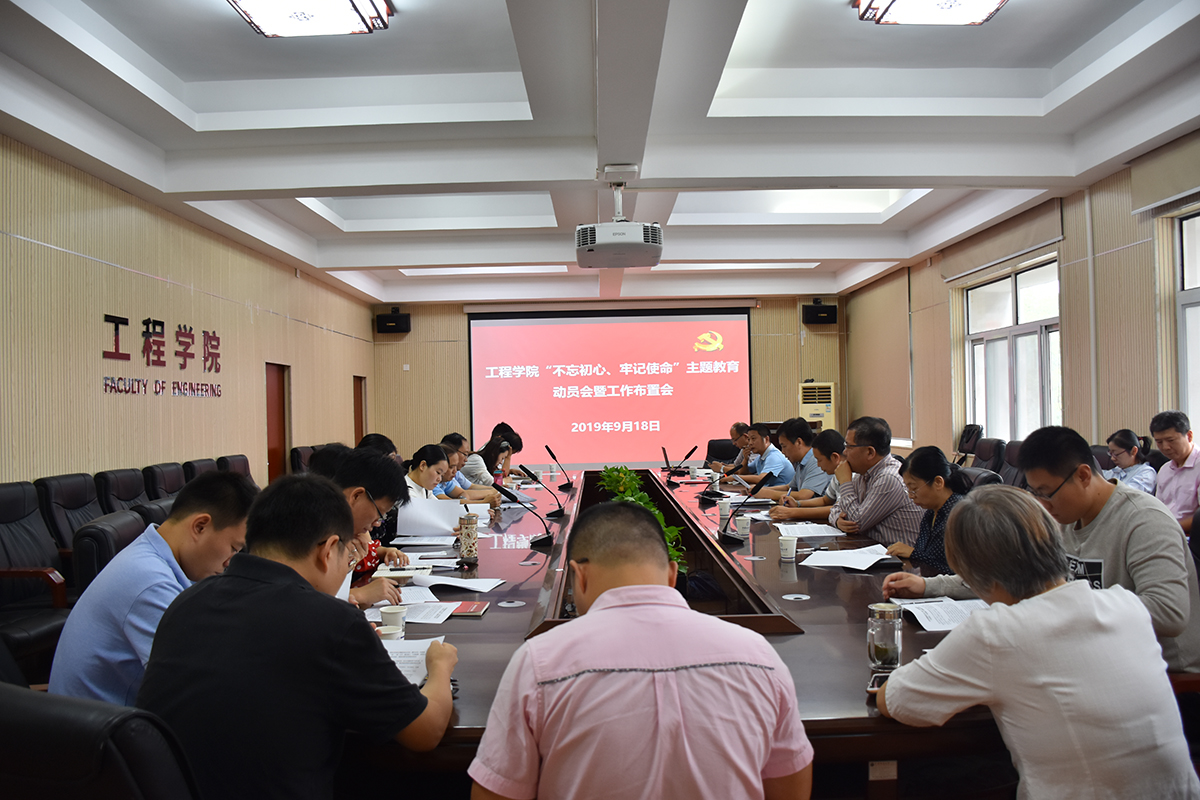 9月18日,2138太阳集团官网“不忘初心、牢记使命”主题教育动员会暨工作布置会在工程楼315会议室召开。学院党委书记、主题教育领导小组组长陈飞作动员讲话,学校主题教育指导组组长、教务处副处长张建和,学院领导班子成员、党委委员、各系(室、中心)支部书记、主任、员工辅导员、三级单位党员代表参会。