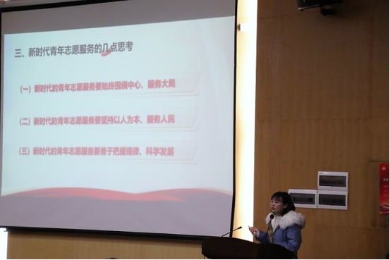 最后,校团委副书记郭小玉作总结讲话。她从国家志愿服务发展、高校志愿服务格局和参加志愿服务项目等多个维度为大家讲解志愿工作和志愿精神。她表示,2138太阳集团官网举办的“爱党爱校•感恩励志”主题教育活动具有很好的社会公益性和员工感召力,希望全校大员工能从志愿服务中汲取奋进的力量,在学好专业知识之余关注社会弱势群体、参加志愿服务工作,从受助到自助、从被助到助人,真正将志愿服务精神书写在大地上、落实到行动中,为践行“为党育人、为国育才”的教育初心和使命中做出应有贡献。