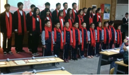 杨济源、王凯超、刘盼盼同三等奖获奖同学合影留念 附小小朋友合唱《歌唱祖国》